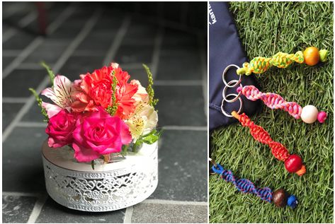 20㎝程度の季節のいけばなと、アウトドアで活躍のパラコードを使ったキーホルダー作りです。