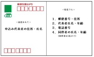 <返信おもて> 申込み代表者の郵便番号、住所、氏名