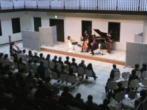 ヴァイオリン、ヴィオラ、チェロ、コントラバスという4つの弦楽器にピアノを加えた編成で、ピアノソロから楽器がひとつずつ増えていくプログラム構成で演奏が行われました。